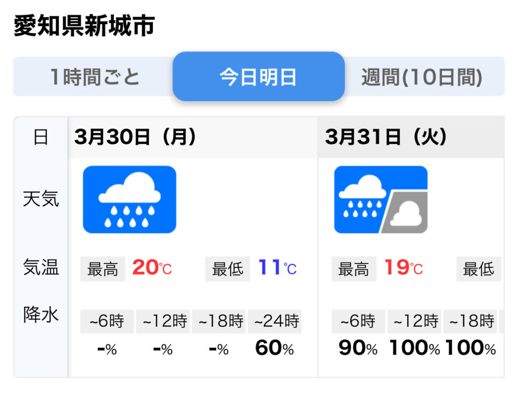 本日は夜から雨が降り始め、ある程度まとまった雨が降りそうです。