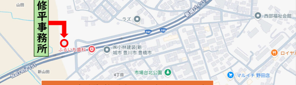 御用の場合は、ふるいち歯科様を目印にお越しいただくとわかやすいかと思います。