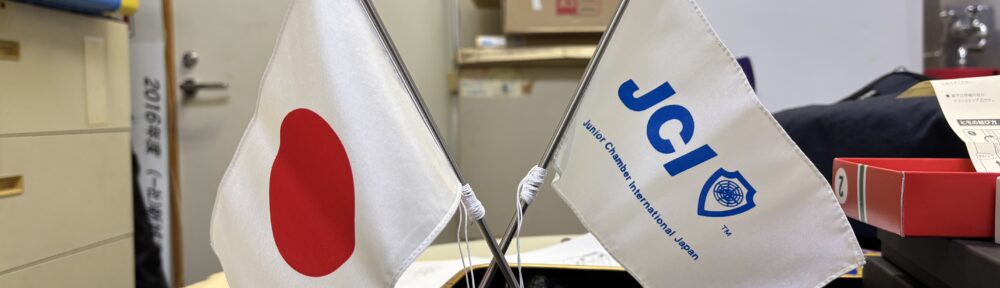 新城JCでは、卒業する際に現役メンバーの皆さんに記念品をお渡しする慣例があり、今回の卒業では手乗りサイズのミニ旗をいただきました。