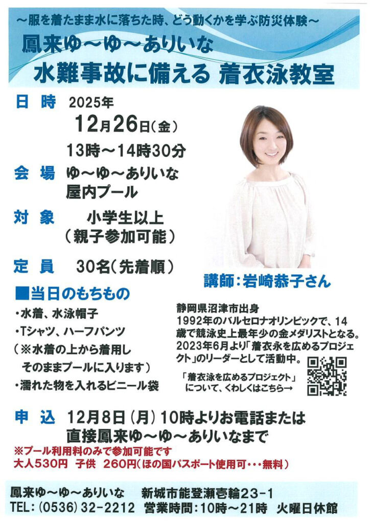 着衣泳を広めるプロジェクトで様々な活動を積極的に実践されているということで、命を守るための水泳知識・技術は大きな学びとなりました。