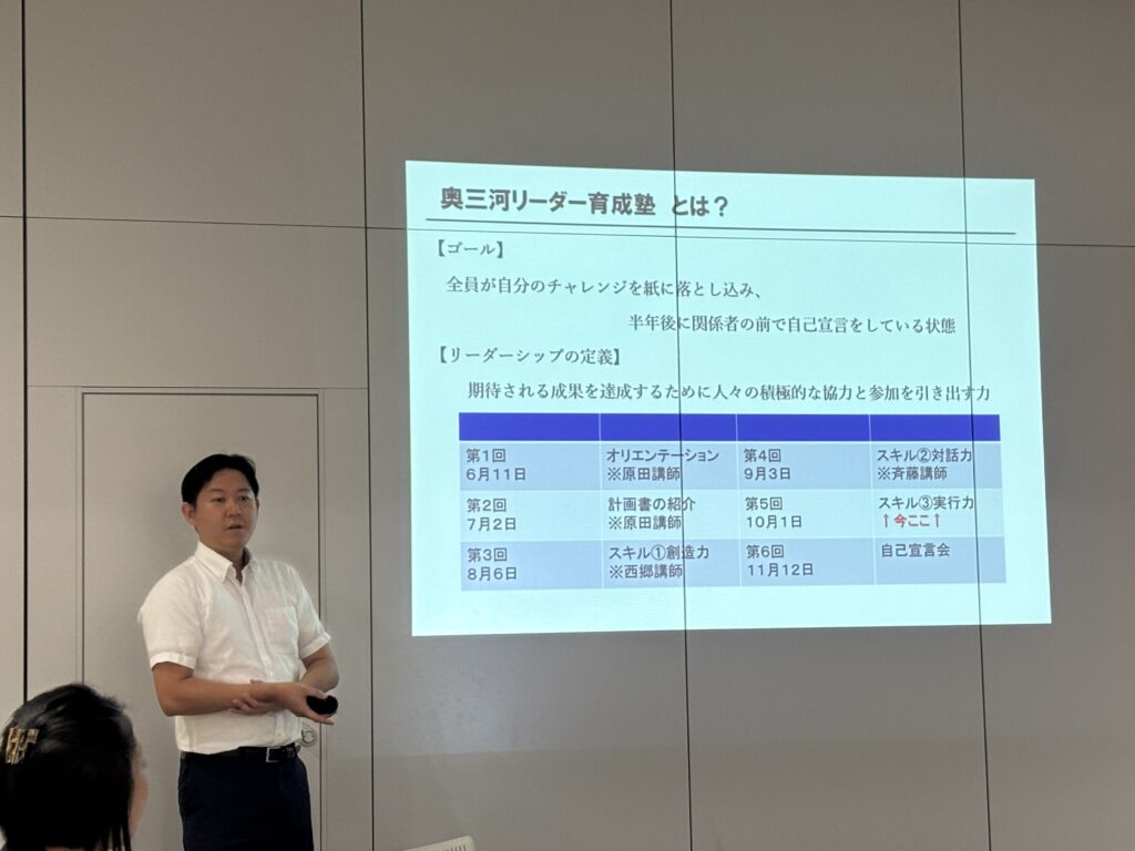 本日は夜、奥三河リーダー育成塾の講座へ。